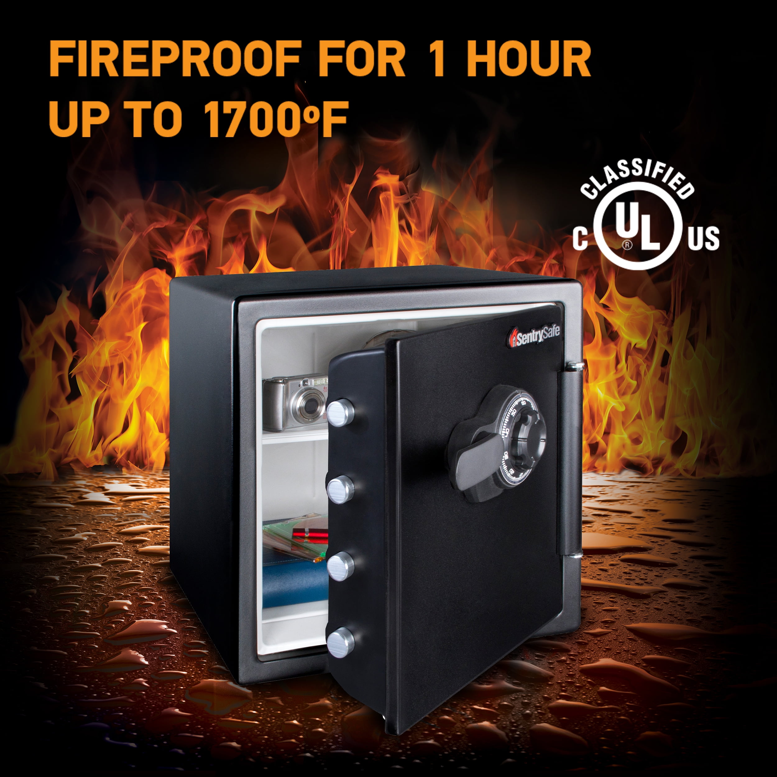 Keep your important documents, digital media, and valuables protected from fire, water, and theft with the SentrySafe 1.2 cu. ft. Combination Fire Safe (Model SFW123CS). This durable and secure home safe is UL classified to withstand up to 1 hour of fire exposure at 1700°F, and ETL verified for both fire and water resistance—keeping your items safe even during extreme conditions.