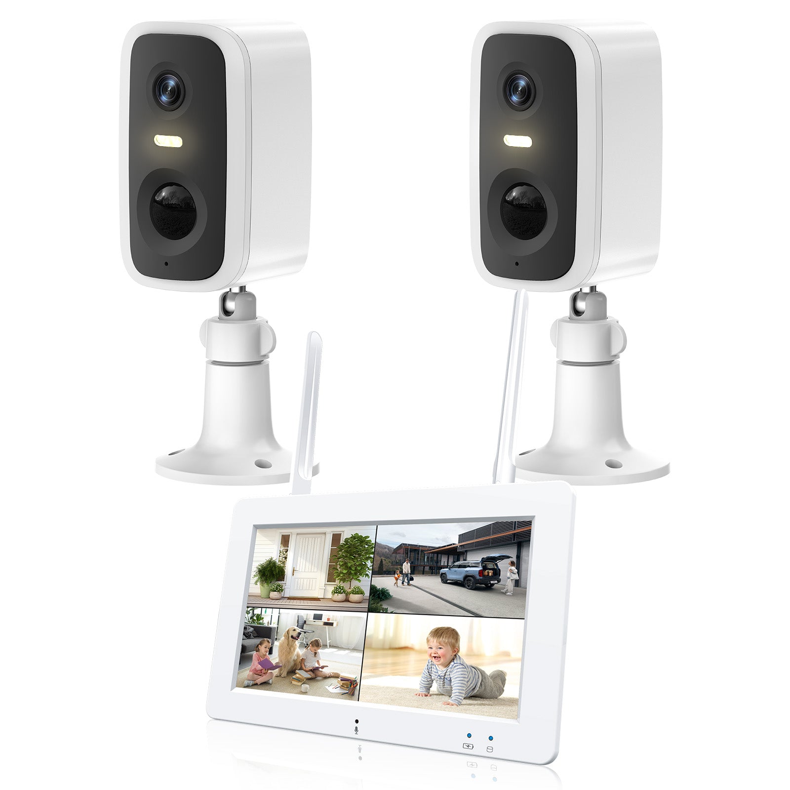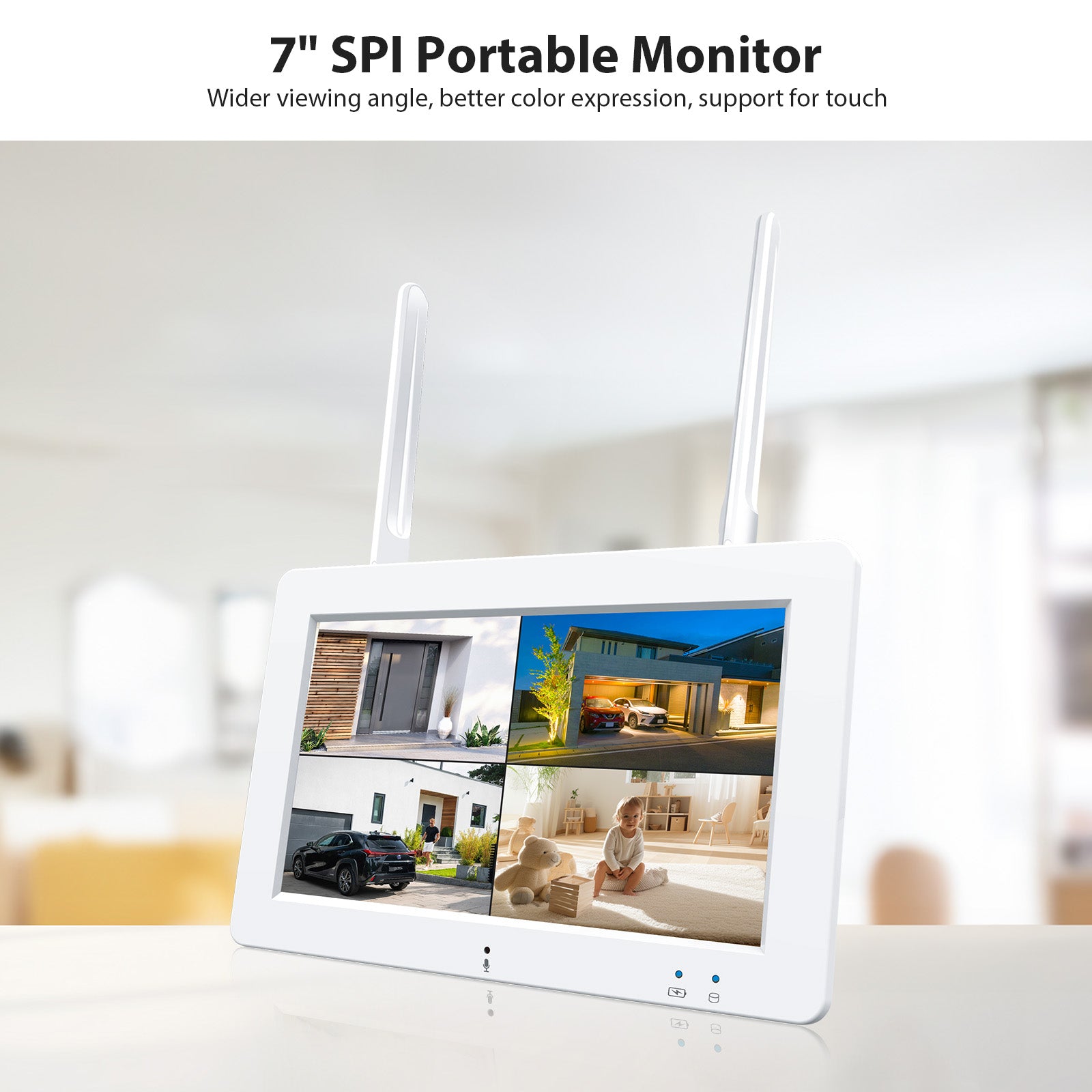 - 7” Portable Touchscreen Monitor:wireless security camera system with a 7-inch touchscreen monitor, providing superior image contrast, clarity, and a wider viewing angle.