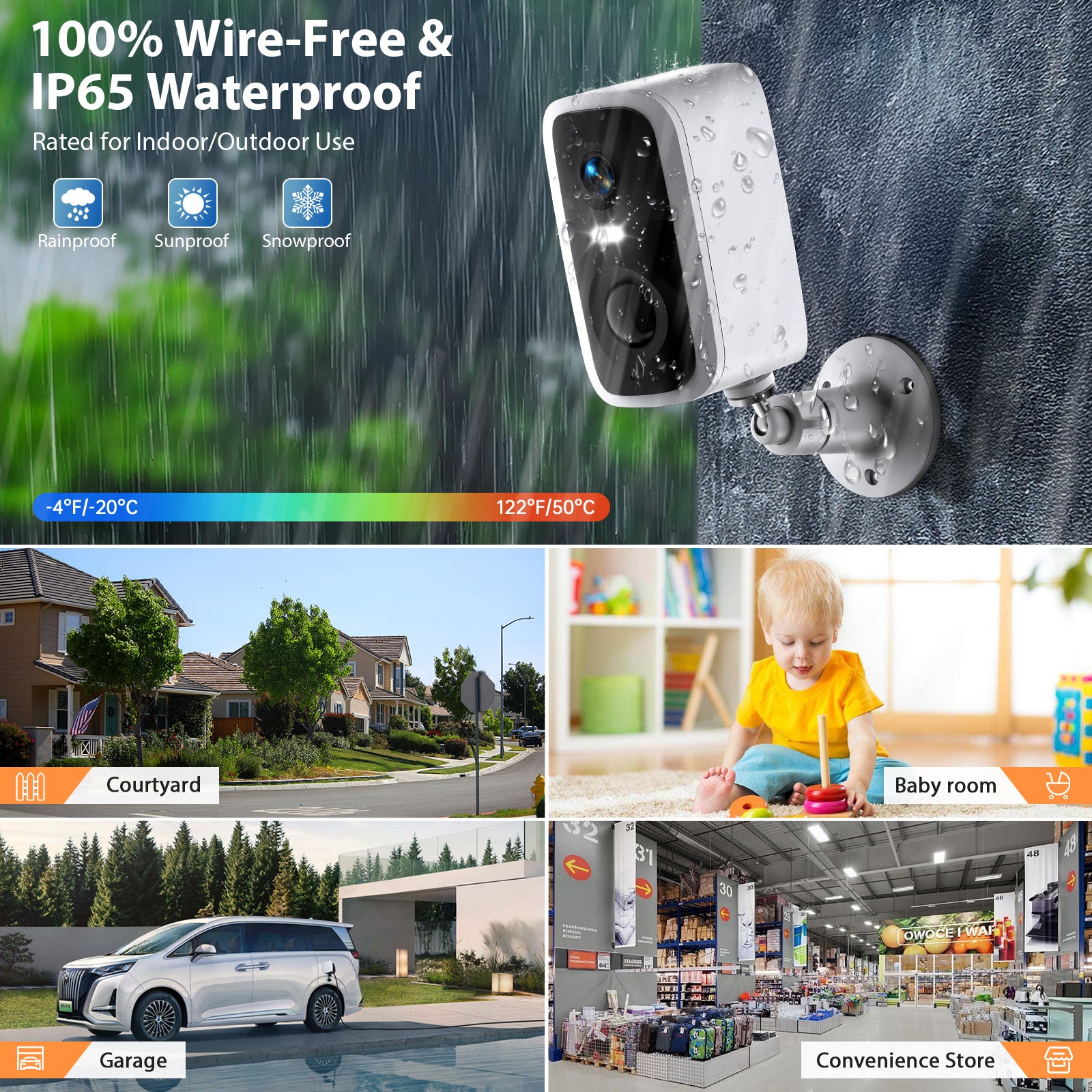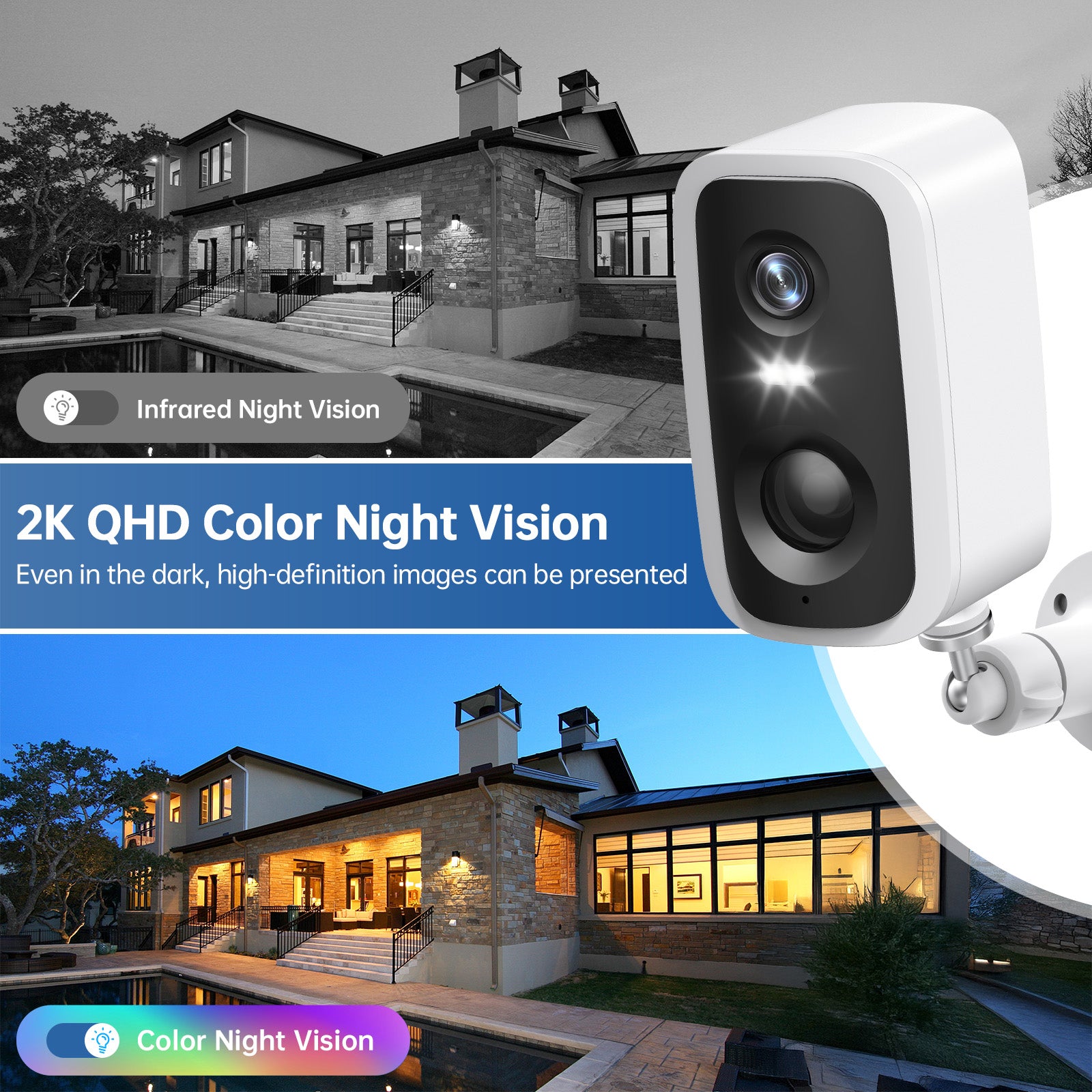 - 4MP pixels & IP65 Waterproof& Color Night Vision:security camera system wireless equipped with a 1/3″ CMOS sensor and 3D digital noise reduction image technology, which shows 4MP (2560 x 1440p) HDR pure and delicate picture, will provide higher image clarity for you.